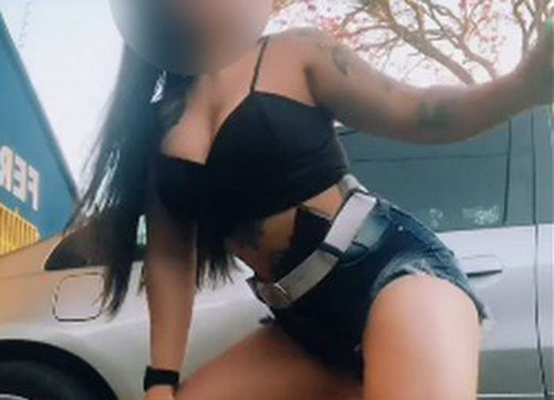 funk com uma arma na cintura. As imagens da policial, que pertence à Polícia